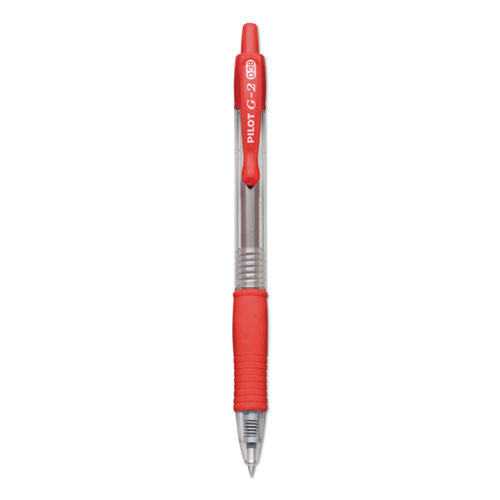 Product Details** Global Product Type Gel Pens Pen Style Retractable Pen Tip Type Conical Pen Point Size Type Extra-Fine Color Family Red Erasable Ink No Refillable Yes Pen Sub-Brand & Product Family G2® Premium Pen Type Gel Pen Pen Point Size 0.38 mm Pen Ink Color(s) Red Pen Barrel Color(s) Smoke/Red Low-Viscosity Ink No Special Ink Properties Water-Based Gel Pen Grip Type Contoured Latex-Free Rubber Visible Ink Supply Yes Pocket Clip Indicator Yes Manufacturer Pen Refill # 77002 Product Biodegradability in Days 0 Pre-Consumer Recycled Content Percent 0% Post-Consumer Recycled Content Percent 0% Total Recycled Content Percent 0% Disclaimer Statement Determined “Longest Lasting” via Independent ISO testing. Results on file with Pilot Corporation of America. Country Of Origin JP Carton Weight 4 lbs. Carton Pack Quantity 12 DZ Pack Quantity 0 UPC 072838312792 UNSPSC 60121524 Shipping Weight & Item Dimensions Weight 0.309 lbs. Length 5.75 in Height 1.25 in Width 3 in