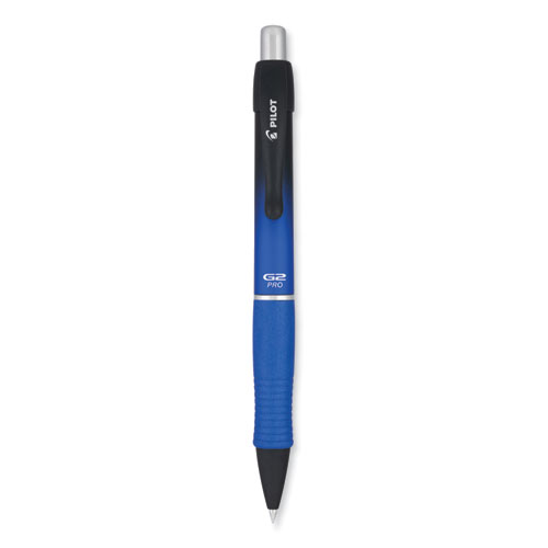 Product Details** Global Product Type Gel Pens Pen Style Retractable Pen Tip Type Conical Pen Point Size Type Fine Color Family Black Erasable Ink No Refillable Yes Pen Sub-Brand & Product Family G2® Pro Pen Type Gel Pen Pen Point Size 0.7 mm Pen Ink Color(s) Black Pen Barrel Color(s) Blue Archival-Quality Ink Yes Low-Viscosity Ink No Special Ink Properties Water-Based Gel Pen Grip Type Conforming Visible Ink Supply No Pocket Clip Indicator Yes Manufacturer Pen Refill # 77240 Product Biodegradability in Days 0 Pre-Consumer Recycled Content Percent 0% Post-Consumer Recycled Content Percent 0% Total Recycled Content Percent 0% Country Of Origin JP Carton Weight 3 lbs. Carton Pack Quantity 36 EA Pack Quantity 0 UPC 072838310965 UNSPSC 60121524 Shipping Weight & Item Dimensions Weight 0.054 lbs. Length 7.313 in Height 0.75 in Width 2.375 in