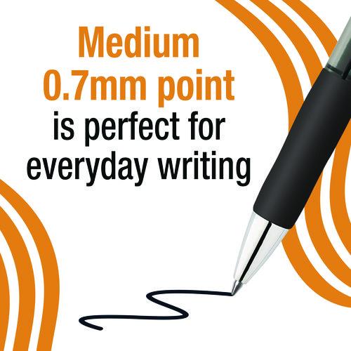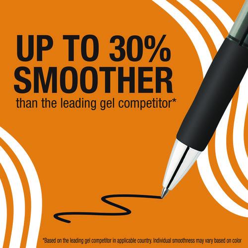 BIC Gelocity Pro Black Gel Pens are your go-to choice for everyday writing. With a 0.7 mm medium point, these pens deliver clear, smear-resistant lines, making them perfect for jotting down notes, making lists, or any other writing tasks. The ink flows easily, providing a super smooth writing experience that’s up to 30% smoother than the leading gel competitor. They’re also a smart choice for left-handed writers, thanks to their smear-resistant ink. The round barrel features an ultra comfortable grip, allowing for a controlled yet comfortable hold, perfect for those long writing sessions. For added convenience, these pens are retractable and come with a plastic clip for easy attachment to pockets and notebooks. Choose BIC Gelocity Pro Ink Gel Pens for a reliable, high-quality writing tool. Individual smoothness may vary based on color. Dries in as little as five seconds.