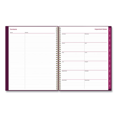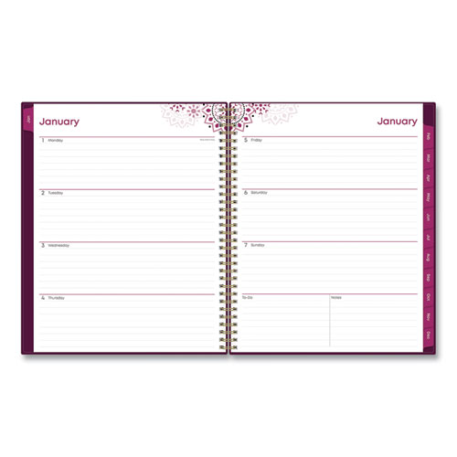 With the perfection of a stencil-like design, the Gili planner features rich jewel tones on the cover. Weekly calendar view per two-page spread is lined for easy scheduling. Monthly view per two-page spread offers a visual overview of your time plus a notes section. Planner also includes a yearly goals page, contacts and notes pages, holidays, and 2-year reference calendar. Twin-wire binding and durable, coated tabs offer easy page turning and access to past, present and future months. Includes six bonus monthly views for easy yearly transitions (July – Dec).