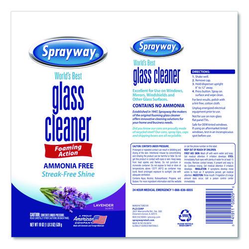 Product Details** Global Product Type Glass Cleaners Physical Form Liquid Scent Lavender Volume Capacity 19 oz Product Packaging Aerosol Spray Application Glass Cleaner Applicable Material Ceramics, Enamel,Fiberglass,Glass,Laminates,Metal,Plastic,Vinyl Chemical Compound Hydrocarbon Dirt Types Body Oils,Dust,Fingerprint,Grease,Grime,Smudges,Water-Based Soil Product Biodegradability Indicator N Product Biodegradability in Days 0 Product Compostability Indicator N Pre-Consumer Recycled Content Percent 0% Post-Consumer Recycled Content Percent 0% Total Recycled Content Percent 0% Country Of Origin US Carton Weight 9 lbs. Carton Pack Quantity 6 EA Pack Quantity 0 UPC 041911050296 UNSPSC 47131805 Shipping Weight & Item Dimensions Weight 8.5 lbs. Length 8.125 in Height 9.56 in Width 5.5 in