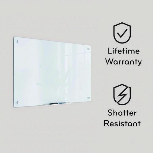 Product Details** Global Product Type Dry Erase Boards – Wall-Mount Board Surface Type(s) Dry Erase Magnetic Board Surface No Surface Material Glass Surface Color White Dedicated Projection Screen No Flipchart Mounting System No Supports Custom Surface Formatting No Board Width 72″ Board Height 36″ Preformatted Board Surface No Mounting Details Horizontal/Vertical “Floating” Wall-Mount System (Included) Product Biodegradability Indicator N Product Biodegradability in Days 0 Product Compostability Indicator N Package Includes Mounting Hardware Pre-Consumer Recycled Content Percent 0% Post-Consumer Recycled Content Percent 0% Total Recycled Content Percent 0% Disclaimer Statement Listed board dimensions have been rounded to the nearest foot. Special Features Actual Size: 70″ x 35″ Country Of Origin CN Carton Weight 42 lbs. Carton Pack Quantity 1 EA Pack Quantity 0 UPC 812296021238 UNSPSC 44111905 Shipping Weight & Item Dimensions Weight 38 lbs. Length 70 in Height 1 in Width 35 in Warranty Manufacturer’s limited lifetime warranty.