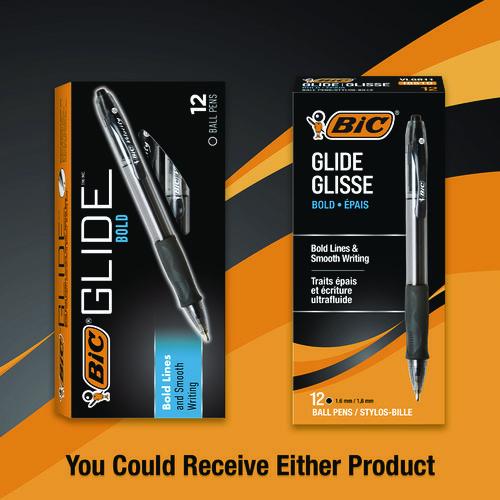 Product Details** Global Product Type Ballpoint Pens Pen Style Retractable Pen Tip Type Conical Pen Point Size Type Bold Color Family Black Erasable Ink No Refillable Yes Pen Sub-Brand & Product Family GLIDE Bold Pen Type Ballpoint Pen Pen Point Size 1.6 mm Pen Ink Color(s) Black Pen Barrel Color(s) Smoke Airplane-Safe Ink Yes Low-Viscosity Ink No Pen Grip Type Contoured Rubber Visible Ink Supply Yes Pocket Clip Indicator Yes Product Biodegradability in Days 0 Pre-Consumer Recycled Content Percent 0% Post-Consumer Recycled Content Percent 0% Total Recycled Content Percent 0% Country Of Origin FR Carton Weight 8 lbs. Carton Pack Quantity 18 DZ Pack Quantity 0 UPC 070330185104 UNSPSC 44121704 Shipping Weight & Item Dimensions Weight 0.42 lbs. Length 6 in Height 1.63 in Width 2.75 in
