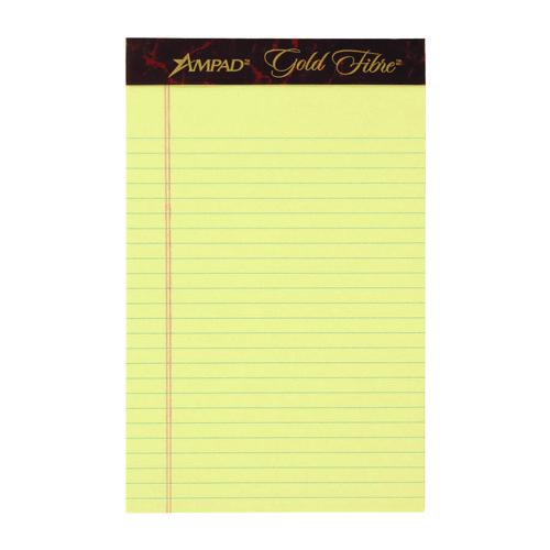Gold Fibre Quality Writing Pads, Medium/College Rule, 50 Canary-Yellow 5 x 8 Sheets, Dozen