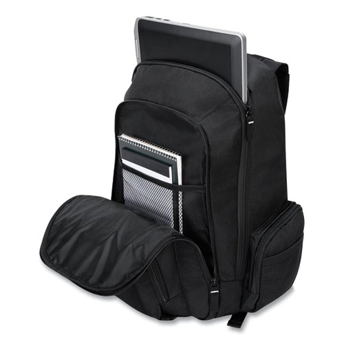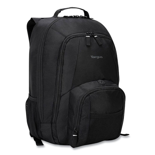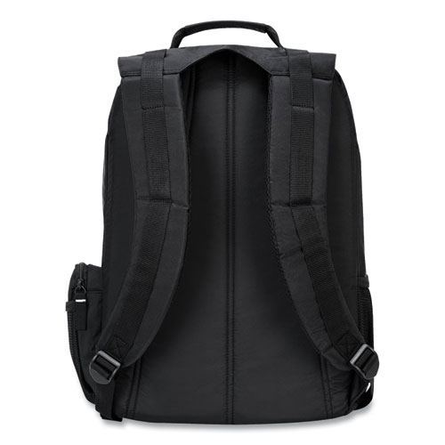 Take your important devices, paperwork and supplies on the go. Affordable backpack accommodates your laptop, your tablet, your phone and all of your gear. A padded internal sleeve protects laptops, while the front section provides generous storage space for mobile phones, chargers, pens, keys and more. It even has a port hole for your wired headphones. An extra pocket sandwiched between the laptop sleeve and front section is ideal for tablets and file folders. A mesh side pocket is perfect for a water bottle. With its multiple compartments, Groove makes it easy to carry everything you need during the day. Durable nylon backpack features a water-proof PVC bottom for reliable protection against weather and wear.