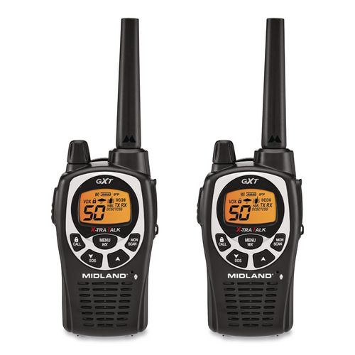 Equip your security team, management staff or supervisory staff with these two-way radios. The waterproof construction is ideal for use outdoors, while the compact size and included belt clips allow for easy carrying. Each 36-mile-range radio (longer range communication in open areas with little or no obstruction) features an S.O.S. siren, making it easy to alert other staff members to a potential emergency. 22 standard channels plus 28 additional channels let you find the right setting for clear, responsive communication. NOAA Weather Scan automatically locks on to your local weather channel and alerts you to severe weather. Powered by rechargeable battery pack, four AA batteries can also be used.