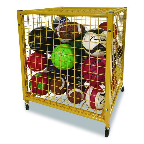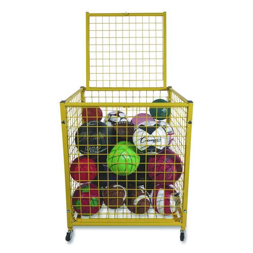 The Champion Sports Half Size Lockable Ball Locker keeps all of your sports balls, or playground balls organized and accessible. This ball locker features an all-steel construction to ensure your items are safe, a yellow powder-coated finish for increased indoor and outdoor durability, and four rubber ball bearing casters that not only protect the finish of your play surface but also allow for convenient transport of equipment.