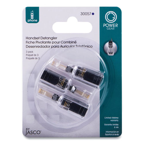 Extend the life of your phone cord and prevent frustrating knots with this pack of three black telephone cord detanglers. This Power Gear cord detangler plugs in neatly between the telephone handset and the cord and allows you to connect phones, modems, answering machines and other phone line devices.