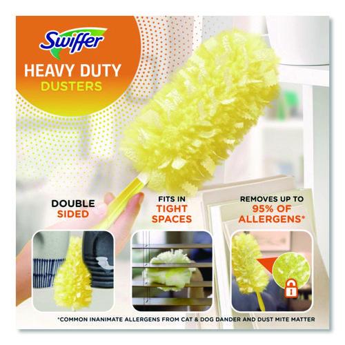 All-around design maximizes surface area to reach tight corners and smaller spaces. Traps and locks up to 3x more dust than a feather duster. Ideal for cleaning wood furniture, electronics, plants and more. For use with Swiffer Heavy Duty Dusters Handle (sold separately).