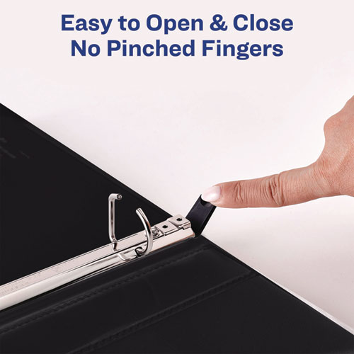 With this Heavy-Duty Nonstick View Binder you get one-touch operation and the durability required for everyday use. Nonstick material won’t lift ink or toner off printed pages. Tear-resistant DuraHinge® design is stronger and lasts longer. DuraEdge® feature makes the sides and top more pliable, providing greater split resistance. Deeply textured film offers a smoother finish and features a linen pattern for a high-quality look and feel. Four clear, interior pockets provide extra storage space. Wider front and back panels fully cover standard dividers and sheet protectors. Slant rings have a higher page capacity when compared to the same size round rings. Pages lie flat with back-mounted rings (exposed rivets on back). Customize your title page using free templates and designs at Avery® Design & Print Online.