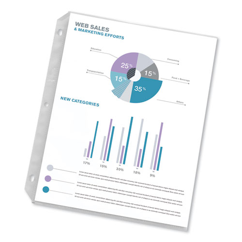 Product Details** Global Product Type Punched Ring Binder Sleeves Load Orientation Top Document Size Range Letter Grade Heavy-Duty Hole-Punch Details Side: 3-Hole Insert Size 8.5 x 11 Front Face Finish Nonglare Front Face Color Clear Front Face Material Polypropylene Backing Color Clear Backing Material Polypropylene Sheet Capacity 10 Product Biodegradability Indicator N Product Biodegradability in Days 0 Product Compostability Indicator N Pre-Consumer Recycled Content Percent 0% Post-Consumer Recycled Content Percent 0% Total Recycled Content Percent 0% Special Features Value Pack—Stock up and save! Country Of Origin CN Carton Weight 24 lbs. Carton Pack Quantity 1000 EA Pack Quantity 0 UPC 077711744011 UNSPSC 44122002 Shipping Weight & Item Dimensions Weight 4.43 lbs. Length 11.9 in Height 2.75 in Width 9.75 in