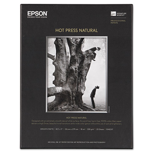 For fine art photographers looking for a matte medium that can deliver a wide color gamut with a natural color, Epson has developed Hot Press Natural Paper. Made from 100% cotton rag and using a hot press production technique, this paper features a smooth matte finish. The heavy weight of 330 gsm, thickness of 17 mil, and opacity of 98% further give this paper the look and feel of a true fine art paper. Also, by forgoing the use of optical brightening agents, this media will offer a warmer, more natural coloration that is less prone to degradation over time. Designed for longevity, Hot Press Natural is free of acid, lignin, and chlorine and is pH buffered.