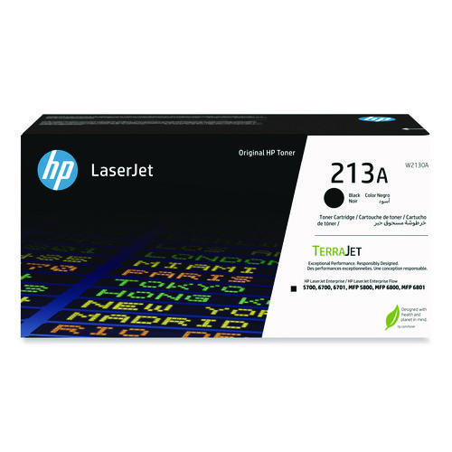 Product Details** Global Product Type Toner/Toner Cartridges OEM/Compatible OEM Supply Type Toner Device Types Laser Printer Color(s) Black Page-Yield 3,500 Market Indicator (Cartridge Number) HP 213A Remanufactured No For Use With HP 5000 Series, 6000 Series Product Biodegradability Indicator N Product Biodegradability in Days 0 Product Compostability Indicator N Pre-Consumer Recycled Content Percent 0% Post-Consumer Recycled Content Percent 17% Total Recycled Content Percent 17% Country Of Origin JP Carton Weight 3 lbs. Carton Pack Quantity 1 EA Pack Quantity 0 UPC 195122822460 UNSPSC 44103103 Shipping Weight & Item Dimensions Weight 2.71 lbs. Length 14.72 in Height 5.83 in Width 7.4 in