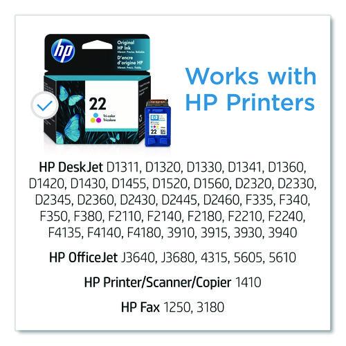 Product Details** Global Product Type Ink/Ink Cartridges OEM/Compatible OEM Supply Type Ink Device Types Inkjet Printer Color(s) Tri-Color Page-Yield 165 Market Indicator (Cartridge Number) HP 22 Remanufactured No Liquid Volume 5 mL For Use With HP DeskJet 3910, 3915, 3930 Series, 3940 Series, D1320, D1330, D1341, D1360, D1420, D1430, D1430, D1455, D1520, D1560, D2320, D2330, D2345, D2360, D2430, D2445, D2460, F335, F340, F350, F380, F2110, F2210, F2140, F2180, F2240, F4135, F4140, F4180,Fax 1250, 3180,OfficeJet J3640, J3680, 4315 Series,PSC 1410 Series Product Biodegradability Indicator N Product Biodegradability in Days 0 Product Compostability Indicator N Pre-Consumer Recycled Content Percent 0% Post-Consumer Recycled Content Percent 0% Total Recycled Content Percent 0% Country Of Origin CN Carton Weight 5 lbs. Carton Pack Quantity 24 EA Pack Quantity 0 UPC 829160897608 UNSPSC 44103105 Shipping Weight & Item Dimensions Weight 0.132 lbs. Length 1.43 in Height 5.53 in Width 4.57 in