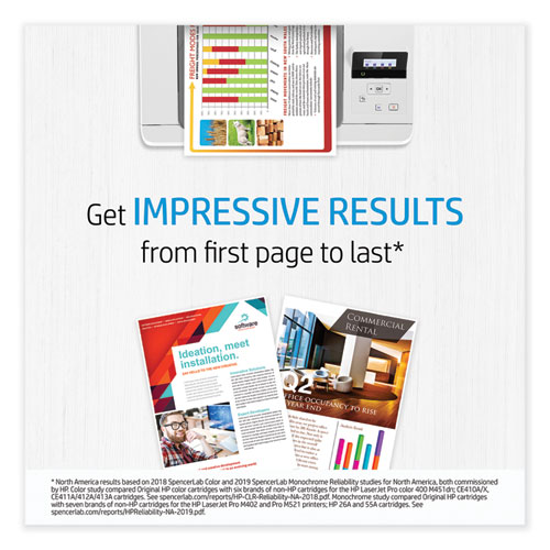 Product Details** Global Product Type Toner/Toner Cartridges OEM/Compatible OEM Supply Type Toner Device Types Laser Printer Color(s) Black Page-Yield 3,100 Market Indicator (Cartridge Number) HP 26A Remanufactured No For Use With HP LaserJet Pro M402dn, M402dne, M402dw, M402n, MFP M426fdn, M426fdw Product Biodegradability Indicator N Product Biodegradability in Days 0 Product Compostability Indicator N Pre-Consumer Recycled Content Percent 0% Post-Consumer Recycled Content Percent 0% Total Recycled Content Percent 0% Country Of Origin JP Carton Weight 5 lbs. Carton Pack Quantity 1 PK Pack Quantity 2 EA UPC 194850025440 UNSPSC 44103103 Shipping Weight & Item Dimensions Weight 4.84 lbs. Length 14.25 in Height 7.8 in Width 8.03 in Warranty Manufacturer’s limited premium protection warranty.