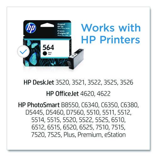 Product Details** Global Product Type Ink/Ink Cartridges OEM/Compatible OEM Supply Type Ink Device Types Inkjet Printer Color(s) Black Page-Yield 250 Market Indicator (Cartridge Number) HP 564 Remanufactured No For Use With HP DeskJet 3520, 3521, 3522, 3526,OfficeJet 4610, 4620, 4622, 6000, 6500, 7000,Photosmart 5512, 5514, 5515, 5520, 5525, 6510, 6520, 6525, 7510, 7515, 7520, B8550, C6340, C6350, D7560, Plus, Premium, Premium Fax, Premium TouchSmart Product Biodegradability in Days 0 Pre-Consumer Recycled Content Percent 0% Post-Consumer Recycled Content Percent 0% Total Recycled Content Percent 0% Footnote 1 Approximate yield of 4″ x 6″ color photos Country Of Origin CN Carton Weight 4 lbs. Carton Pack Quantity 24 EA Pack Quantity 0 UPC 883585829729 UNSPSC 44103105 Shipping Weight & Item Dimensions Weight 0.12 lbs. Length 3.94 in Height 0.94 in Width 4.52 in