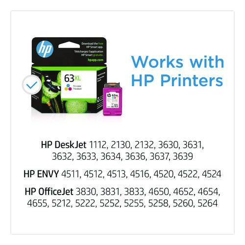 Product Details** Global Product Type Ink/Ink Cartridges OEM/Compatible OEM Supply Type Ink Yield Type High-Yield Device Types Inkjet Printer Color(s) Tri-Color Page-Yield 300 Market Indicator (Cartridge Number) HP 63XL Remanufactured No For Use With HP DeskJet 1110, 2130, 3630,ENVY 4520,OfficeJet 3830, 4650 Product Biodegradability in Days 0 Pre-Consumer Recycled Content Percent 0% Post-Consumer Recycled Content Percent 0% Total Recycled Content Percent 0% Country Of Origin CN Carton Weight 4 lbs. Carton Pack Quantity 24 EA Pack Quantity 0 UPC 889296267416 UNSPSC 44103105 Shipping Weight & Item Dimensions Weight 0.14 lbs. Length 4.49 in Height 1.43 in Width 4.05 in Warranty Manufacturer’s limited warranty.