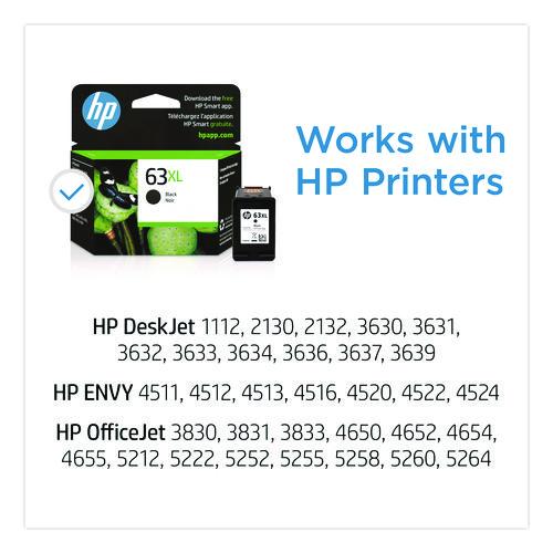 Product Details** Global Product Type Ink/Ink Cartridges OEM/Compatible OEM Supply Type Ink Yield Type High-Yield Device Types Inkjet Printer Color(s) Black Page-Yield 430 Market Indicator (Cartridge Number) HP 63XL Remanufactured No For Use With HP DeskJet 1110, 2130, 3630,ENVY 4520,OfficeJet 3830, 4650 Product Biodegradability in Days 0 Pre-Consumer Recycled Content Percent 0% Post-Consumer Recycled Content Percent 0% Total Recycled Content Percent 0% Country Of Origin CN Carton Weight 4 lbs. Carton Pack Quantity 24 EA Pack Quantity 0 UPC 889296267423 UNSPSC 44103105 Shipping Weight & Item Dimensions Weight 0.13 lbs. Length 4.49 in Height 1.43 in Width 4.05 in Warranty Manufacturer’s limited warranty.