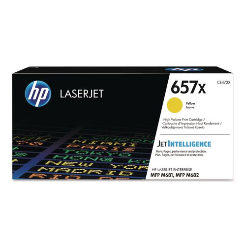 Product Details** Global Product Type Toner/Toner Cartridges OEM/Compatible OEM Supply Type Toner Yield Type High-Yield Device Types Laser Printer Color(s) Yellow Page-Yield 23,000 Market Indicator (Cartridge Number) HP 657X Remanufactured No For Use With HP Color LaserJet Enterprise M681DH, M682,Color LaserJet Enterprise MFP M681F Product Biodegradability Indicator N Product Biodegradability in Days 0 Product Compostability Indicator N Pre-Consumer Recycled Content Percent 0% Post-Consumer Recycled Content Percent 0% Total Recycled Content Percent 0% Country Of Origin JP Carton Weight 4 lbs. Carton Pack Quantity 1 EA Pack Quantity 0 UPC 889894325518 UNSPSC 44103103 Shipping Weight & Item Dimensions Weight 3.56 lbs. Length 6.42 in Height 7.56 in Width 14.88 in