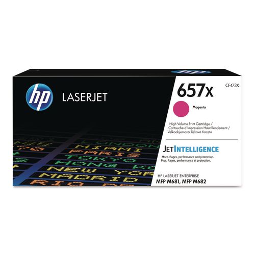 Product Details** Global Product Type Toner/Toner Cartridges OEM/Compatible OEM Supply Type Toner Yield Type High-Yield Device Types Laser Printer Color(s) Magenta Page-Yield 23,000 Market Indicator (Cartridge Number) HP 657X Remanufactured No For Use With HP Color LaserJet Enterprise M681DH, M682,Color LaserJet Enterprise MFP M681F Product Biodegradability Indicator N Product Biodegradability in Days 0 Product Compostability Indicator N Pre-Consumer Recycled Content Percent 0% Post-Consumer Recycled Content Percent 0% Total Recycled Content Percent 0% Country Of Origin JP Carton Weight 4 lbs. Carton Pack Quantity 1 EA Pack Quantity 0 UPC 889894325525 UNSPSC 44103103 Shipping Weight & Item Dimensions Weight 3.56 lbs. Length 6.42 in Height 7.56 in Width 14.88 in