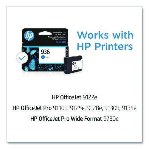 Count on professional-quality documents. Original HP Ink Cartridges provide impressive reliability for dependable performance and durable results. Quickly print with individual inks that produce business documents with vibrant colors and sharp black text. Set your business apart with Original HP Ink Cartridges. Specifically designed to work with your HP printer, they deliver professional results and minimize wasted prints. Designed with security in mind. An upgraded chip adds enhanced security to Original HP 936 ink cartridges to help protect your data so you can print more and worry less.