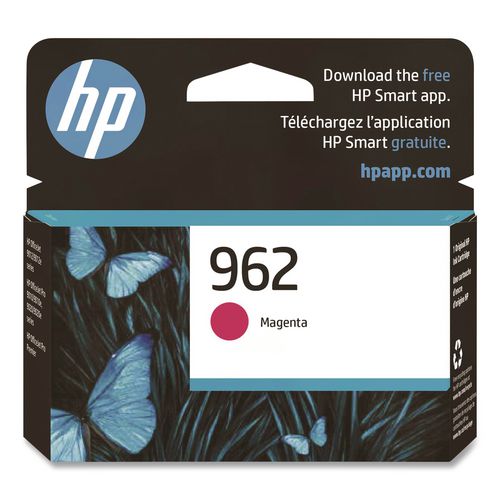 Product Details** Global Product Type Ink/Ink Cartridges OEM/Compatible OEM Supply Type Ink Device Types Inkjet Printer Color(s) Magenta Page-Yield 1,000 Market Indicator (Cartridge Number) HP 962 Remanufactured No For Use With HP Officejet Pro 9025, 9020, 9018, 9015, 9010 Product Biodegradability Indicator N Product Biodegradability in Days 0 Product Compostability Indicator N Pre-Consumer Recycled Content Percent 0% Post-Consumer Recycled Content Percent 0% Total Recycled Content Percent 0% Country Of Origin MY Carton Weight 3 lbs. Carton Pack Quantity 24 EA Pack Quantity 0 UPC 192545377928 UNSPSC 44103105 Shipping Weight & Item Dimensions Weight 0.12 lbs. Length 3.94 in Height 0.94 in Width 4.52 in