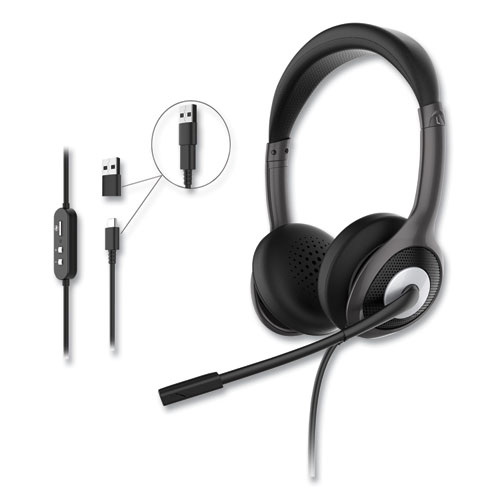 Morpheus 360 Connect USB Stereo Headset with Boom Microphone offers a lightweight comfortable design that will encourage you to work smarter and play longer. USB connector is compatible for PC/Mac and the inline volume/mute control with mounting clip allows you to attach to your shirt for cable management. The noise cancelling boom microphone has 240° rotation and can be positioned on your right or left for all day productivity. Specialized IC provides the noise cancellation in the boom microphone. This technology allows the source of noise to be identified and electronically filtered out of the conversation. The protein leather ear cushions are designed to deliver comfort, with memory foam insulation and soft protein leather earpads, to simulate the natural feel of leather on your skin. The USB inline volume controls/microphone mute allows you to adjust the volume up or down, as well as mute the microphone when needed. Comes complete with a USB-A connector and a USB Type-C adapter, so it can connect to your PC/Mac with Plug and Play ease. No driver required.