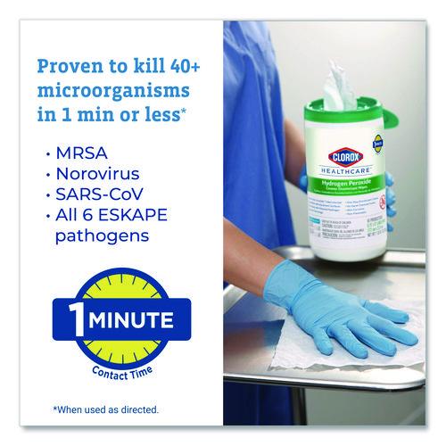 Product Details** Global Product Type Cleaner/Detergent Wet Wipes Towel/Wipe Type Cleaning/Disinfecting Wipes Number of Towels/Wipes Per Container 185 Scent Unscented Color(s) White Applicable Material Baked Enamel,Chrome,Glass,Glazed Ceramic,Glazed Porcelain,Laminated Surfaces,Nonporous Medical Surfaces,Plastic,Stainless Steel,Vinyl Chemical Compound Hydrogen Peroxide Dirt Types Bacteria,Microorganisms,Viruses Length 11″ Width 12″ Product Packaging Pack Application Hospitals,Medical Facilities,Nursing Homes Product Biodegradability Indicator N Product Biodegradability in Days 0 Product Compostability Indicator N Compliance Standards EPA Reg. No. 67619-25,EPA List N Pre-Consumer Recycled Content Percent 0% Post-Consumer Recycled Content Percent 0% Total Recycled Content Percent 0% Country Of Origin US Carton Weight 16 lbs. Carton Pack Quantity 2 EA Pack Quantity 0 UPC 044600308272 UNSPSC 47131805 Shipping Weight & Item Dimensions Weight 15.13 lbs. Length 12.19 in Height 7.93 in Width 7.81 in