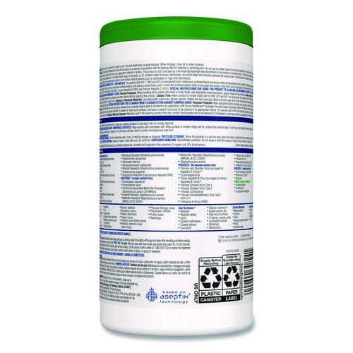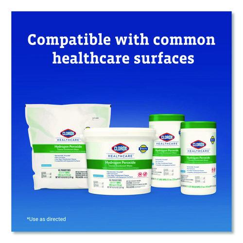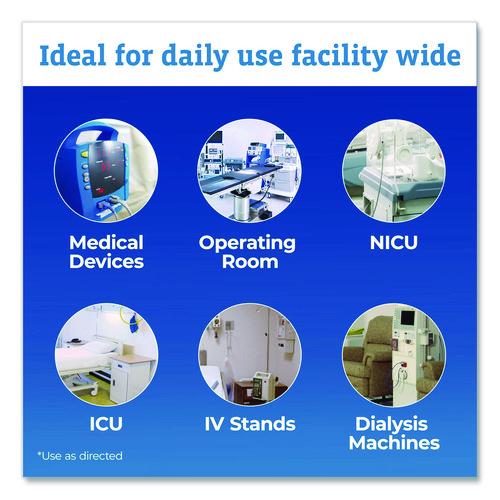 Product Details** Global Product Type Cleaner/Detergent Wet Wipes Towel/Wipe Type Cleaning/Disinfecting Wipes Number of Towels/Wipes Per Container 95 Scent Unscented Color(s) White Applicable Material Baked Enamel,Chrome,Glass,Glazed Ceramic,Glazed Porcelain,Laminated Surfaces,Nonporous Medical Surfaces,Plastic,Stainless Steel,Vinyl Chemical Compound Hydrogen Peroxide Dirt Types Microorganisms Length 6.75″ Width 9″ Product Packaging Canister Application Hospitals,Medical Facilities,Nursing Homes Product Biodegradability Indicator N Product Biodegradability in Days 0 Product Compostability Indicator N Compliance Standards EPA Reg. No. 67619-24,EPA List N Pre-Consumer Recycled Content Percent 0% Post-Consumer Recycled Content Percent 0% Total Recycled Content Percent 0% Country Of Origin US Carton Weight 13 lbs. Carton Pack Quantity 6 EA Pack Quantity 0 UPC 044600308241 UNSPSC 47131502 Shipping Weight & Item Dimensions Weight 12.6 lbs. Length 13.19 in Height 9.19 in Width 8.94 in
