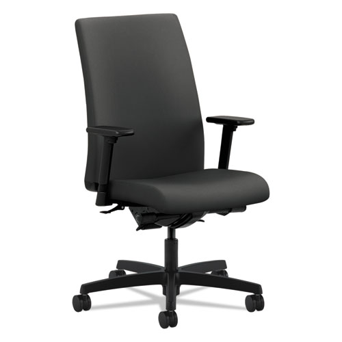 Product Details** Global Product Type Office Chairs Color Family Gray Arms Included Yes Pneumatic Seat Height Adjustment Yes Tilt Tension/Tilt Lock Yes Integral Lumbar Support No Seat Surface Material Family Fabric Recommended Application Area(s) General Office & Task Seat Color Iron Ore Back Color Iron Ore Arm Type Padded T-Bar Weight Capacity Supports Up to 300 lb Back Height Adjustment Yes Seat Glide Mechanism Yes Knee Tilt No Synchronized Knee Tilt No Dual-Action Tilt Yes Posture Lock No Multi-Task Control No Asynchronous Control No Dual-Clutch Posture Control No Variable Synchro-Tilt No Arm Adjustability Height,Width Armrest Color Black Armrest Material Polyurethane Distance Between Arms 17″ to 19.5″ Arm Height From Seat 8″ to 11″ Overall Width Maximum 29″ Overall Depth Maximum 27″ Overall Height Maximum 44″ Seat Width Maximum 20″ Seat Depth Minimum 15.25″ Seat Depth Maximum 17.25″ Seat Height Minimum 17″ Seat Height Maximum 22″ Seat Surface Material 100% Polyester Back Width Maximum 18.5″ Back Height Minimum 21″ Back Height Maximum 24″ Back Surface Material 100% Polyester Back Surface Material Family Fabric Base/Frame Color Black Base/Frame Material(s) Plastic Caster/Glide Details Five Casters Caster/Glide Surface Texture Hard Product Biodegradability in Days 0 Compliance Standards Level 2 Certified,Meets or Exceeds ANSI/BIFMA Standards,Meets or Exceeds ISTA Performance Standards,SCS Indoor Advantage Certified,SCS Indoor Advantage Gold Certified Pre-Consumer Recycled Content Percent 3% Post-Consumer Recycled Content Percent 38% Total Recycled Content Percent 41% Disclaimer Statement Casters supplied with this chair are not suitable for all floor types. Country Of Origin US Carton Weight 63 lbs. Carton Pack Quantity 1 EA Pack Quantity 0 UPC 020459296793 UNSPSC 56112104 Shipping Weight & Item Dimensions Weight 62.3 lbs. Length 32.5 in Height 23 in Width 25.75 in Warranty Backed by the HON Full Lifetime Warranty.