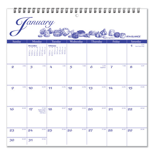 Monthly wall calendar features a new illustration each month with the essentials you need to manage your schedule.