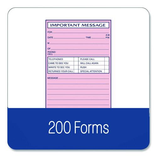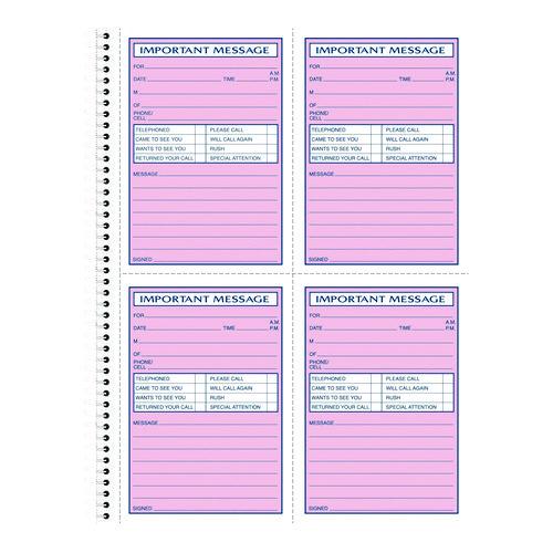 Take note of important messages easily and efficiently with Adams® Important Message Book. Pre-formatted forms provide prompts for all the important details: intended recipient, date, time, comprehensive contact details, means of contact, action-requested, message-taker’s name as well as plenty of ruled space for the body of the message. Carbonless, multi-part format allows you to pass along priority messages and keep a copy in the book for administrative tasks. Spiral binding keeps the copies secure while allowing the book to lay flat when open.