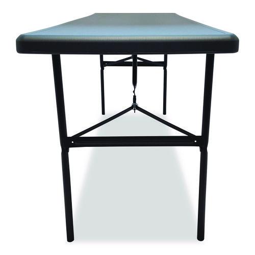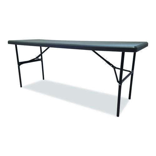 Product Details** Global Product Type Multiuse Folding & Nesting Tables Top Shape Rectangular Color Family Gray Maximum Weight Capacity Supports Up to 300 lb (evenly distributed) Overall Width 72″ Height (Max) 29″ Top Color Charcoal Overall Depth 24″ Top Material Blow-Molded High-Density Polyethylene Base/Leg Material 1″ Tubular Steel Base Type (4) Folding Legs Edge Detail Profile Radius Edge For Use With Iceberg Rough ‘N Ready Folding and Stacking Chairs Product Biodegradability in Days 0 Compliance Standards Meets or Exceeds ANSI/BIFMA Standards Pre-Consumer Recycled Content Percent 35% Post-Consumer Recycled Content Percent 0% Total Recycled Content Percent 35% Country Of Origin US Carton Weight 33 lbs. Carton Pack Quantity 1 EA Pack Quantity 0 UPC 674785653876 UNSPSC 56101706 Shipping Weight & Item Dimensions Weight 33 lbs. Length 73 in Height 2.5 in Width 25 in Warranty Manufacturer’s limited 15-year warranty.