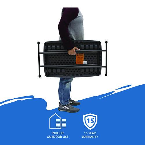 Product Details** Global Product Type Multiuse Folding & Nesting Tables Top Shape Rectangular Color Family Gray Maximum Weight Capacity Supports Up to 25 lb (evenly distributed) Overall Width 30″ Height (Max) 28″ Top Color Charcoal Overall Depth 20″ Height (Min) 25″ Top Material Blow-Molded High-Density Polyethylene Base/Leg Material 1″ Tubular Steel Base Type (4) Folding Legs Edge Detail Profile Radius Edge Product Biodegradability in Days 0 Compliance Standards Meets or Exceeds ANSI/BIFMA Standards Pre-Consumer Recycled Content Percent 35% Post-Consumer Recycled Content Percent 0% Total Recycled Content Percent 35% Country Of Origin CN Carton Weight 11 lbs. Carton Pack Quantity 1 EA Pack Quantity 0 UPC 674785654910 UNSPSC 56101706 Shipping Weight & Item Dimensions Weight 11 lbs. Length 40 in Height 3 in Width 21 in Warranty Manufacturer’s limited 15-year warranty.