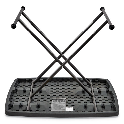 Lightweight, durable and portable. The perfect size table provides extra space. The dent- and scratch-resistant top is easy-to-clean and is constructed of blow molded high-density polyethylene. Heavy gauge, sturdy 1″ steel tube legs, with charcoal gray powder coat finish, folds into recessed channels for easy storage. Height is adjustable at either 25″ or 28″. Ideal for indoor or outdoor use.