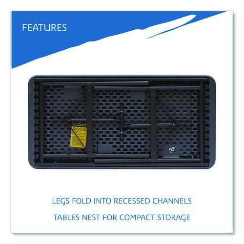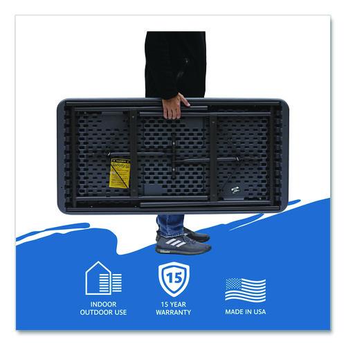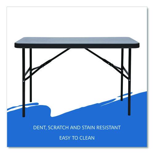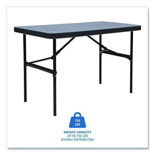 Product Details** Global Product Type Multiuse Folding & Nesting Tables Top Shape Rectangular Color Family Gray Maximum Weight Capacity Supports Up to 750 lb (evenly distributed) Overall Width 48″ Height (Max) 29″ Base Color Charcoal Top Color Charcoal Top Thickness 2″ Overall Depth 24″ Top Material High-Density Polyethylene (HDPE) Base/Leg Material Steel Base Type Interlocking Folded Height 2.5″ Edge Detail Profile Square Caster/Glide/Wheel (4) Rubber Glides Product Biodegradability Indicator N Product Biodegradability in Days 0 Product Compostability Indicator N Pre-Consumer Recycled Content Percent 0% Post-Consumer Recycled Content Percent 0% Total Recycled Content Percent 0% Country Of Origin US Carton Weight 25 lbs. Carton Pack Quantity 1 EA Pack Quantity 0 UPC 000000000000 UNSPSC 56121403 Shipping Weight & Item Dimensions Weight 24.5 lbs. Length 49 in Height 2.5 in Width 25 in Warranty Manufacturer’s limited 15-year warranty.