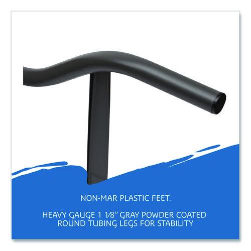 • Powder-coated, round metal-tube legs feature fold-out braces for extra strength and stability.