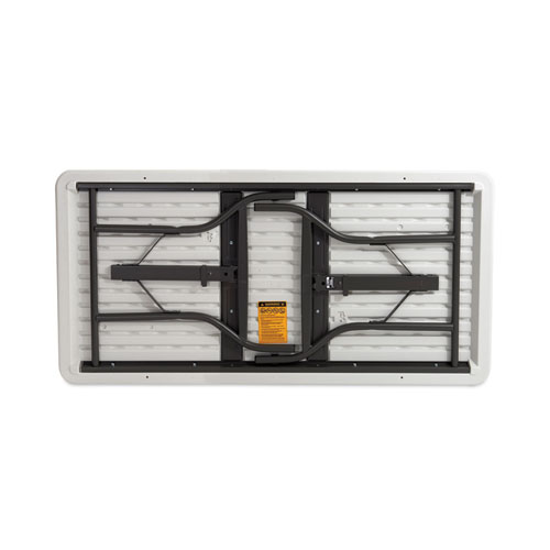 Folding tables so multi-functional you’ll wonder how you lived without them. Industrial-grade construction more than stands up to the tough demands that offices, schools, hotels and conference centers make. An attractive, contemporary design ensures they’ll fit in wherever you place them. Dent- and scratch-resistant, easy-to-clean top is fabricated of blow-molded high-density polyethylene and features soft-beveled radius edges. Powder-coated, round metal-tube legs feature fold-out braces for extra strength and stability. Ideal for indoor and outdoor use. Tables nest together when stacked, with their legs folding into protective channels, to help you maximize your available storage space.