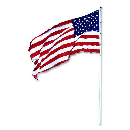 Display this American flag on a pole, holder or staff and stand. Made with durable nylon, stitched stripes and embroidered stars, this flag is built for long-lasting use indoors or outdoors. Has a canvas header with heavy-duty brass grommets for quick and reliable mounting.