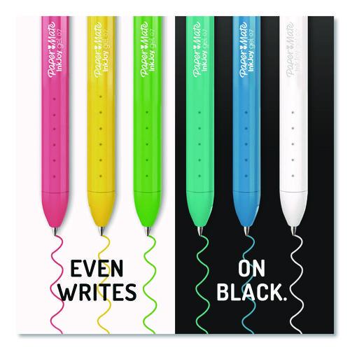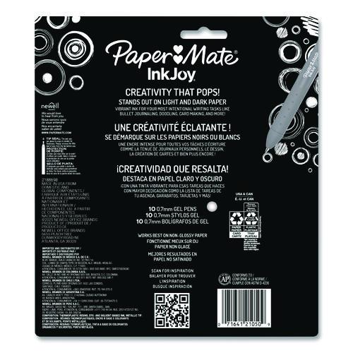 Product Details** Global Product Type Gel Pens Pen Style Retractable Pen Tip Type Bullet Pen Point Size Type Medium Color Family Multicolor Erasable Ink No Refillable No Pen Sub-Brand & Product Family InkJoy Gel Bright Pen Type Gel Pen Pen Point Size 0.7 mm Pen Ink Color(s) Assorted Pen Ink Color(s) Assortment Amethyst,Aquamarine,Bright Blue,Lime,Orange,Pewter Seafoam,Strawberry,White,Yellow Pen Barrel Color(s) Assorted Pen Barrel Color(s) Assortment Amethyst,Aquamarine,Bright Blue,Lime,Orange,Pewter Seafoam,Strawberry,White,Yellow Permanent/Washable Ink Permanent Archival-Quality Ink Yes Airplane-Safe Ink Yes Low-Viscosity Ink Yes Pen Grip Type Comfort Visible Ink Supply No Pocket Clip Indicator Yes Product Biodegradability Indicator N Product Biodegradability in Days 0 Product Compostability Indicator N Pre-Consumer Recycled Content Percent 0% Post-Consumer Recycled Content Percent 0% Total Recycled Content Percent 0% Country Of Origin US Carton Weight 5 lbs. Carton Pack Quantity 12 PK Pack Quantity 10 EA UPC 071641210509 UNSPSC 60121524 Shipping Weight & Item Dimensions Weight 0.3 lbs. Length 0.65 in Height 7.625 in Width 6.75 in