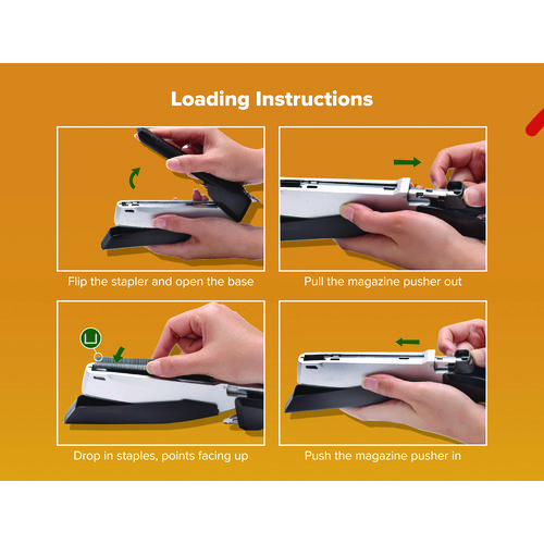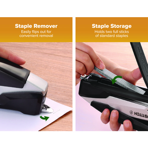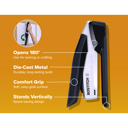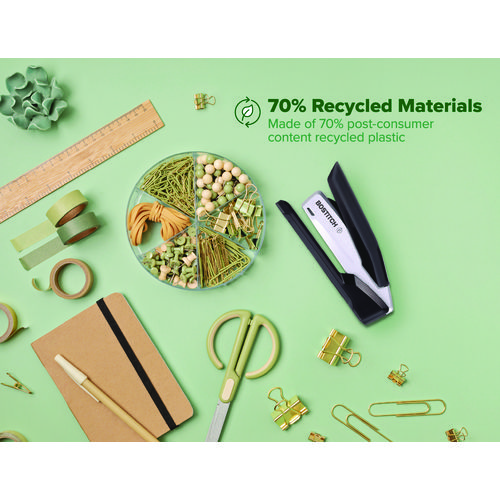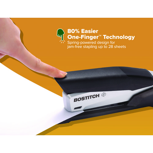 With One-Finger™ Stapling Technology by Bostitch Office, all it takes is a finger to get the job done. Our inPower™ stapler boasts a long-lasting sleek, die-cast metal body that provides the eye candy your desk craves, all while featuring construction made from post-consumer recycled plastic. The easy stapling of up to 28 sheets, along with the ergonomic non-slip comfort grip and base, provide the luxury you deserve. Using standard staples, it also works jam-free and opens for bulletin board tacking. Perfect for home, school or the office – experience a better way to staple while maintaining sustainability choices.