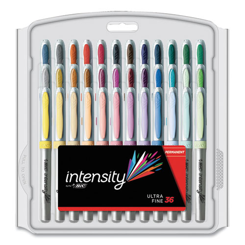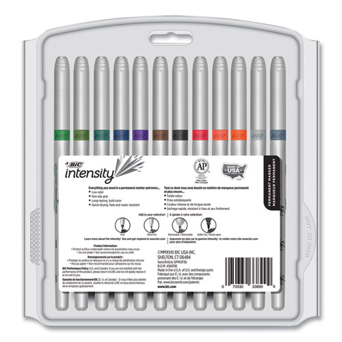 Product Details** Global Product Type Art Markers Marker Ink Type Permanent Marker Grade General Use Marker Tip Type Needle Color Family Multicolor Marker Tip Size (text) Ultra-Fine Marker Color(s) Assorted Vivid Fashion Marker Color Assortment 36 Assorted Colors Marker Series Intensity® Product Biodegradability Indicator N Product Biodegradability in Days 0 Product Compostability Indicator N Compliance Standards ACMI AP Non-Toxic Certified,Conforms to ASTM D4236 Standards Pre-Consumer Recycled Content Percent 0% Post-Consumer Recycled Content Percent 0% Total Recycled Content Percent 0% Country Of Origin US Carton Weight 7 lbs. Carton Pack Quantity 6 PK Pack Quantity 36 EA UPC 070330338999 UNSPSC 44121708 Shipping Weight & Item Dimensions Weight 1 lbs. Length 8.629 in Height 1.905 in Width 8.057 in