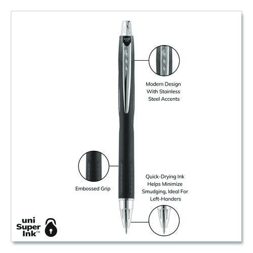 Product Details** Global Product Type Hybrid Pens Pen Style Retractable Pen Tip Type Conical Pen Point Size Type Bold Color Family Black Erasable Ink No Refillable Yes Pen Sub-Brand & Product Family Jetstream™ Pen Type Hybrid Gel Pen Pen Point Size 1 mm Pen Ink Color(s) Black Pen Barrel Color(s) Black/Silver Airplane-Safe Ink Yes Low-Viscosity Ink No Special Ink Properties uni Super Ink™ Pen Grip Type Textured Rubber Visible Ink Supply No Pocket Clip Indicator Yes Product Biodegradability Indicator N Product Biodegradability in Days 0 Product Compostability Indicator N Pre-Consumer Recycled Content Percent 0% Post-Consumer Recycled Content Percent 0% Total Recycled Content Percent 0% Country Of Origin JP Carton Weight 5 lbs. Carton Pack Quantity 12 DZ Pack Quantity 0 UPC 030246738320 UNSPSC 44121701 Shipping Weight & Item Dimensions Weight 0.384 lbs. Length 6 in Height 1.16 in Width 3.36 in