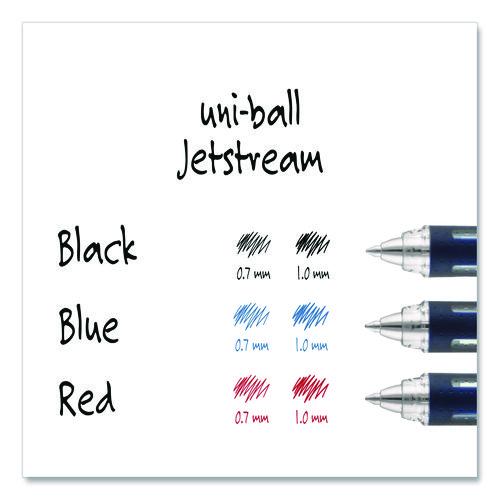 Product Details** Global Product Type Hybrid Pens Pen Style Stick Pen Tip Type Conical Pen Point Size Type Bold Color Family Black Erasable Ink No Refillable Yes Pen Sub-Brand & Product Family Jetstream Pen Type Hybrid Gel Pen Pen Point Size 1 mm Pen Ink Color(s) Black Pen Barrel Color(s) Black/Silver Pen Cap Color(s) Black/Silver Airplane-Safe Ink Yes Low-Viscosity Ink No Pen Grip Type Windowed Visible Ink Supply No Pocket Clip Indicator Yes Manufacturer Pen Refill # 74396PP Product Biodegradability Indicator N Product Biodegradability in Days 0 Product Compostability Indicator N Pre-Consumer Recycled Content Percent 0% Post-Consumer Recycled Content Percent 0% Total Recycled Content Percent 0% Country Of Origin JP Carton Weight 5 lbs. Carton Pack Quantity 144 EA Pack Quantity 0 UPC 030246339213 UNSPSC 44121701 Shipping Weight & Item Dimensions Weight 0.028 lbs. Length 5.3 in Height 0.3 in Width 0.6 in