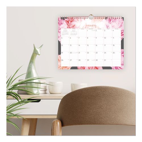 With elegant florals to accent any room, the Blue Sky® Joselyn Monthly Wall Calendar is perfect for tracking deadlines, birthdays and special events. Each month features large-font dates, plenty of space for daily notations, a count of days-past/days-remaining, all major holidays labeled and reference calendars to keep you on track. High-quality paper reduces the potential for ink-bleed. Printed using soy-based inks. Polished metal twin-wire binding with matching wall-hang loop.