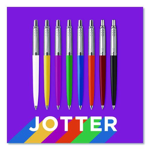 Product Details** Global Product Type Ballpoint Pens Pen Style Retractable Pen Tip Type Conical Pen Point Size Type Medium Color Family Blue Erasable Ink No Refillable Yes Pen Sub-Brand & Product Family Jotter® Pen Type Ballpoint Pen Pen Point Size 0.7 mm Pen Ink Color(s) Blue Pen Barrel Color(s) Black/Chrome Airplane-Safe Ink Yes Low-Viscosity Ink No Pen Grip Type Smooth Visible Ink Supply No Pocket Clip Indicator Yes Product Biodegradability Indicator N Product Biodegradability in Days 0 Product Compostability Indicator N Pre-Consumer Recycled Content Percent 0% Post-Consumer Recycled Content Percent 0% Total Recycled Content Percent 0% Country Of Origin FR Carton Weight 1 lbs. Carton Pack Quantity 6 EA Pack Quantity 0 UPC 000000000000 UNSPSC 60121524 Shipping Weight & Item Dimensions Weight 0.049 lbs. Length 8.071 in Height 0.551 in Width 2.756 in