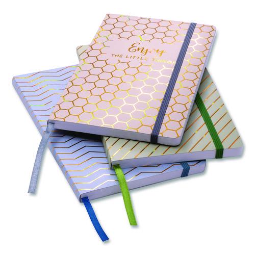 Product Details** Global Product Type General Purpose Notebooks Pocket Sized No Book-Binding Type Sewn Color Family Beige Number of Subjects/Sections 1 Sheet Size (Bound-Side First) 8.3 x 5.8 Sheet Rule/Format Type Medium/College Rule Book-Binding Details Sewn: Flexible Cover Book-Binding Edge Side Cover Design/Theme “Enjoy the Little Things” Message,Honeycomb Design Cover Color Taupe Haze/Gold Book-Spine Length 8.27″ Book Width 5.24″ Front-Cover Material Card Back-Cover Material Card Sheets per Book/Journal 96 Sheet Color White Sheet Ruling Size 8 mm Note-Rule Lines per Sheet 24 Sheet-Ruling Color Gray Dated No Product Biodegradability Indicator N Product Biodegradability in Days 0 Product Compostability Indicator N Pre-Consumer Recycled Content Percent 0% Post-Consumer Recycled Content Percent 0% Total Recycled Content Percent 0% Disclaimer Statement This product was made using wood sourced from a certified managed forest. Country Of Origin VN Carton Weight 15 lbs. Carton Pack Quantity 8 PK Pack Quantity 3 EA UPC 000000000000 UNSPSC 14111514 Shipping Weight & Item Dimensions Weight 1.832 lbs. Length 8.268 in Height 0.394 in Width 5.827 in