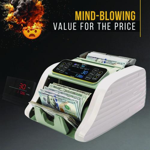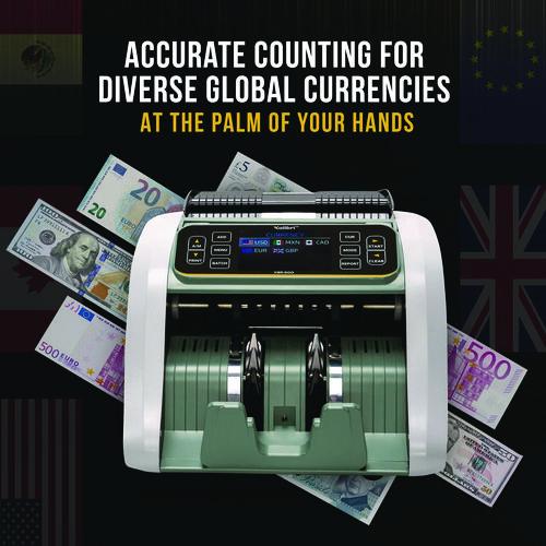 If you’re looking for a reliable money counter with advanced counterfeit detection for your home or business, confidently choose the Kolibri KBR-500 Mixed Denomination Bill Counter. This back-loading machine helps you save time and reduce counting errors by swiftly and precisely counting and sorting stacks of currency at speeds up to 1,200 bills per minute. Never worry about the accuracy of a count again as this bill counter utilizes advanced ultraviolet, magnetic and infrared detection to stop operation for any suspected counterfeit bill as well as half, chain and double bill detection to ensure count accuracy. Large and clear TFT LCD display features an intuitive control panel with automatic modes and functions to make the Kolibri KBR-500 the perfect product for effortless cash handling. Business-grade, multi-currency design supports operation with currencies from the United States, Canada, Mexico, the United Kingdom and the European Union.