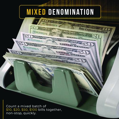 KBR-500 Mixed Denomination Bill Counter, 1,200 Bills/Min, 9.2″ x 14.3″ x 13″, Light Gray/Black