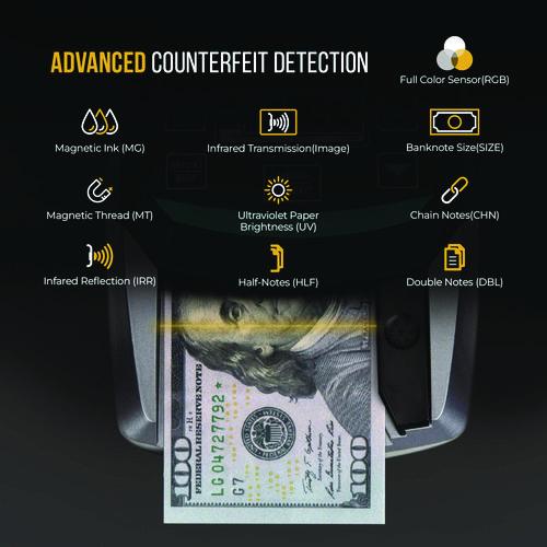 • Shield your business from counterfeit bills with six advanced detection methods, including ultraviolet, magnetic ink, infrared and size detection.